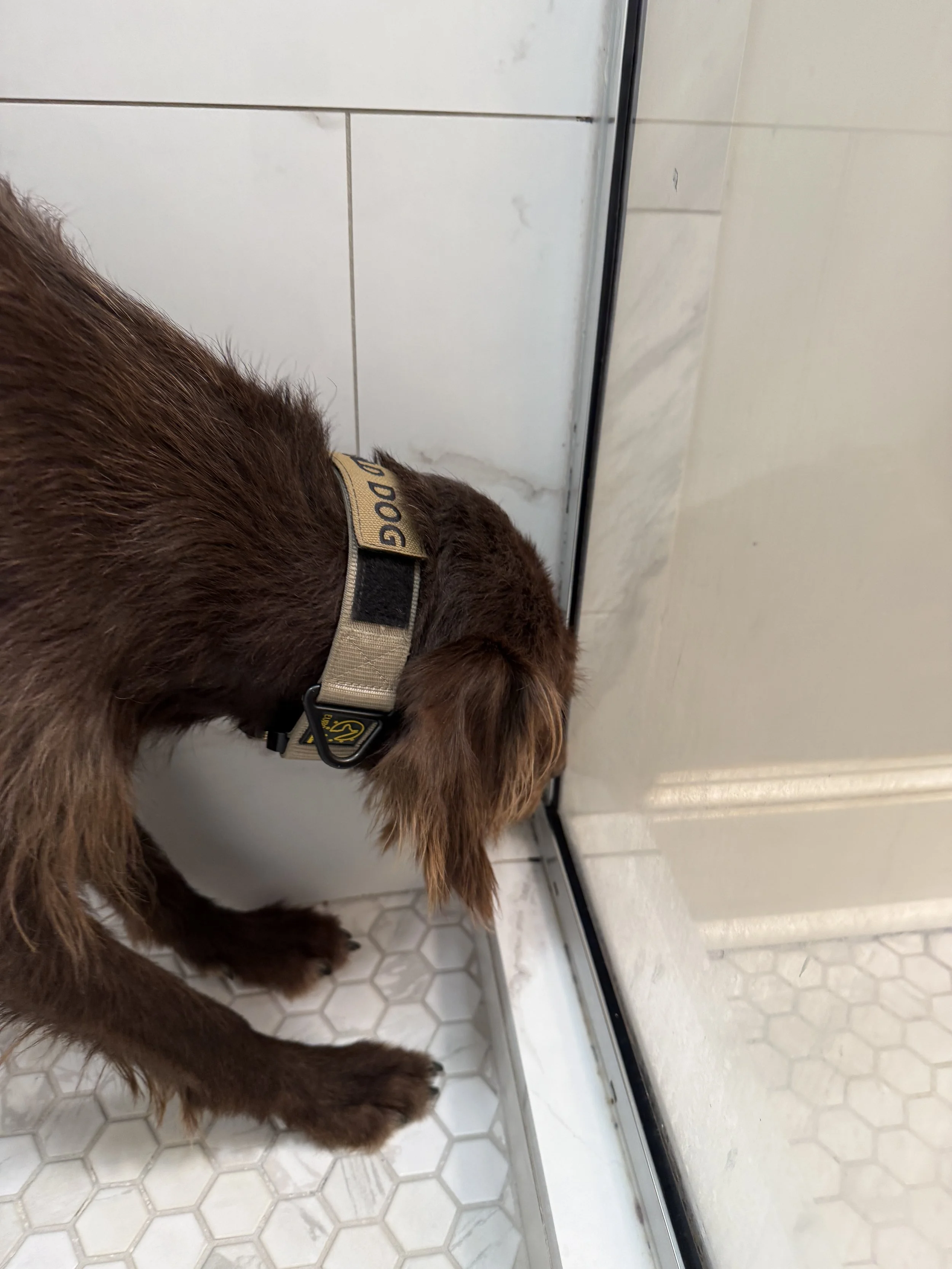 Cash is the most valuable tool on every job. He’s a Pudelpointer, a hunting breed developed in the late 19th century for their exceptional nose, sharp instincts, and loyal temperament. Through generations of selective breeding, Pudelpointers have become known for their refined scenting ability, calm nature, and unshakable drive to work.